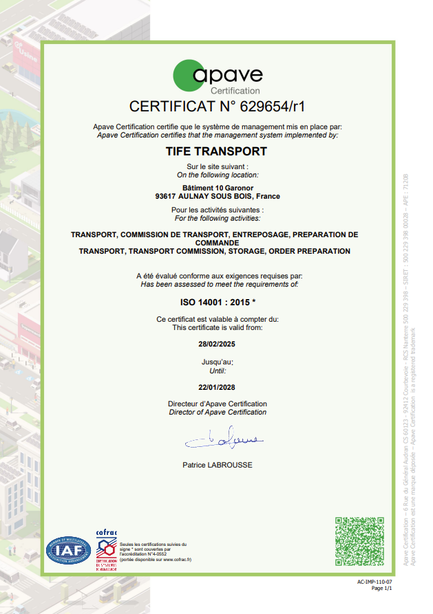Certifiés ISO14001 depuis 2019, cette distinction atteste de notre démarche proactive en faveur d’un transport durable, grâce à des actions concrètes :